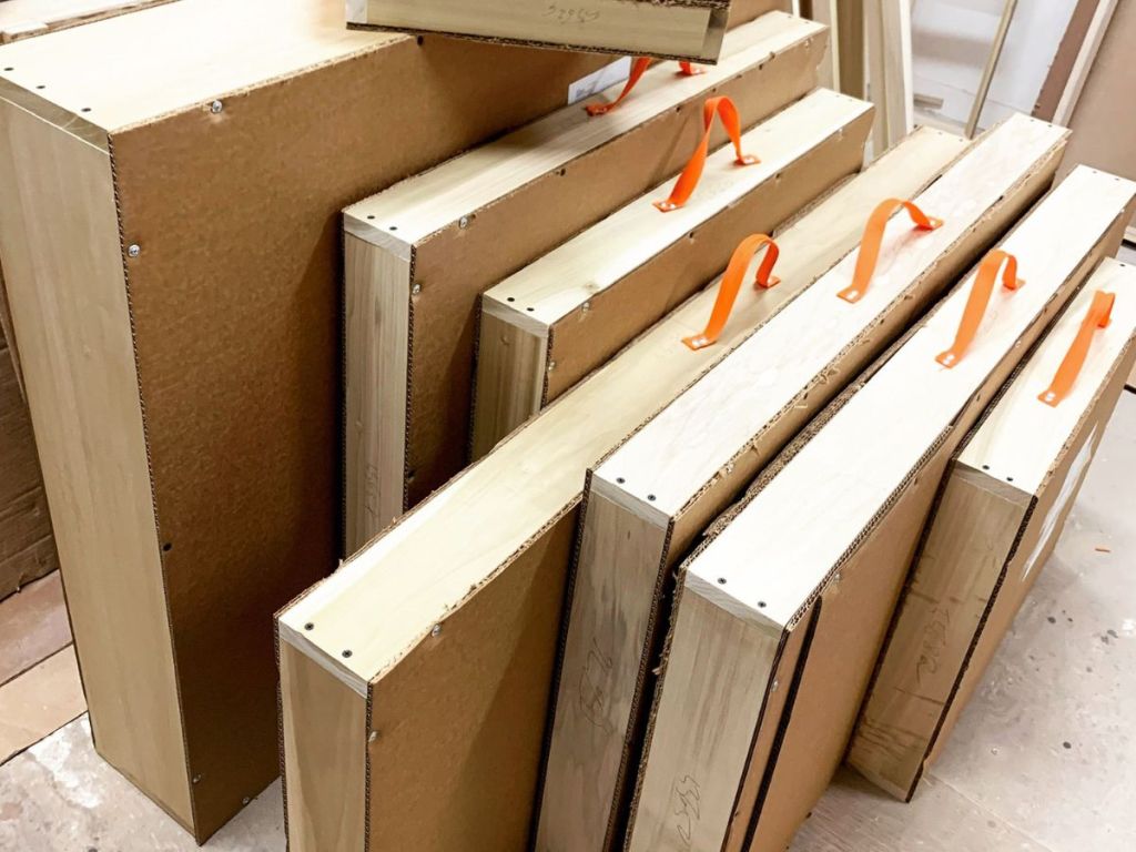 - Use separators (foam boards, cardboard sheets, or wooden slats) between each canvas to avoid direct contact and surface scratches.