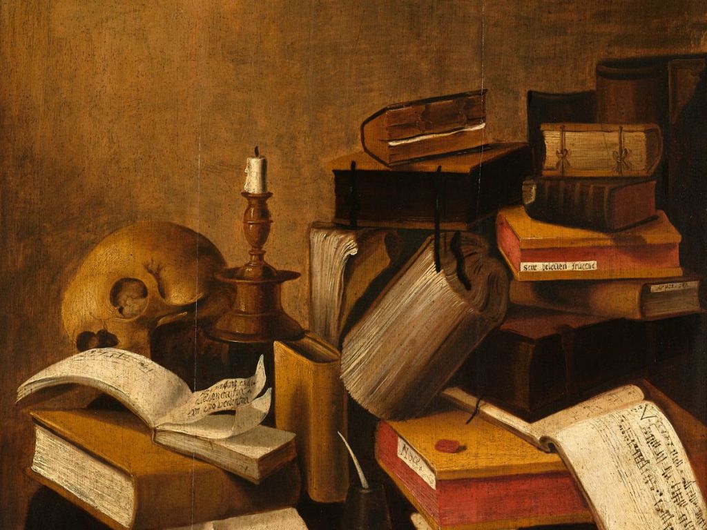 Books are symbols of knowledge, learning, and the human pursuit of wisdom. In still life compositions, they may also mean the transient nature of intellectual achievements, especially when joined with symbols of mortality like skulls or hourglasses.